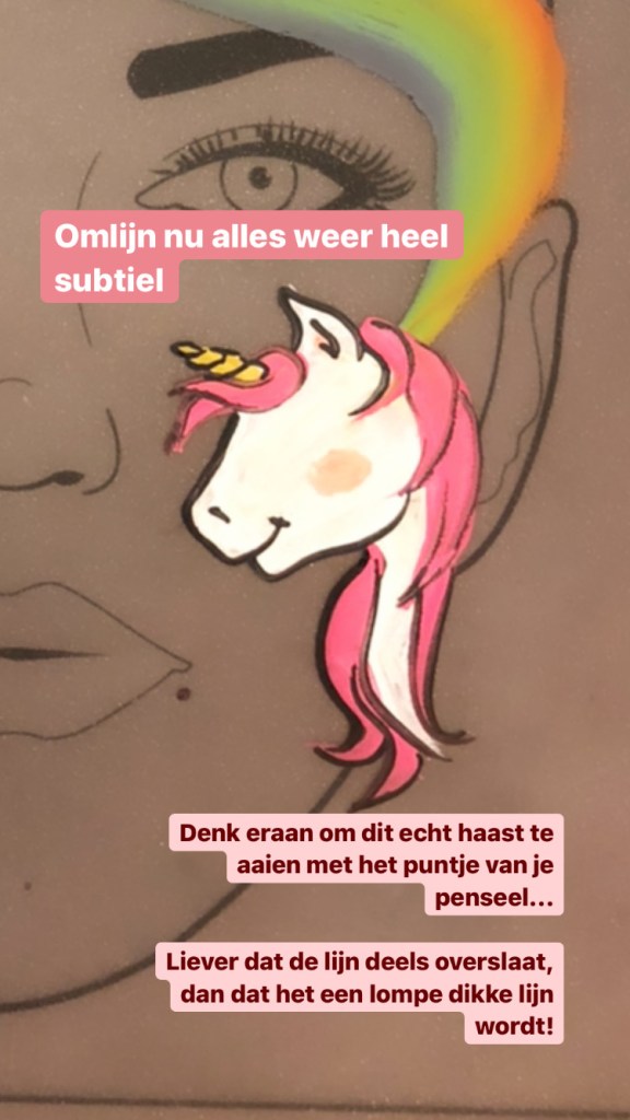 “Ik deed mee, omdat ik een ondernemer als jou wilde steunen in deze bijzondere tijden, het leek me al langer leuk om te leren schminken en vond het altijd al bijzonder wat voor een mooie creaties jij (en ik nu ook een beetje) kan maken. Het was echt heel zen om te doen en de uitleg maakte alles wat ingewikkeld leek een stuk makkelijker. Het enthousiasme werkt aanstekelijk. Het was elke keer weer een feestje op mijn scherm en het spiekbriefje achteraf was helemaal een cadeautje, precies wat ik nodig had om verder te kunnen oefenen.”